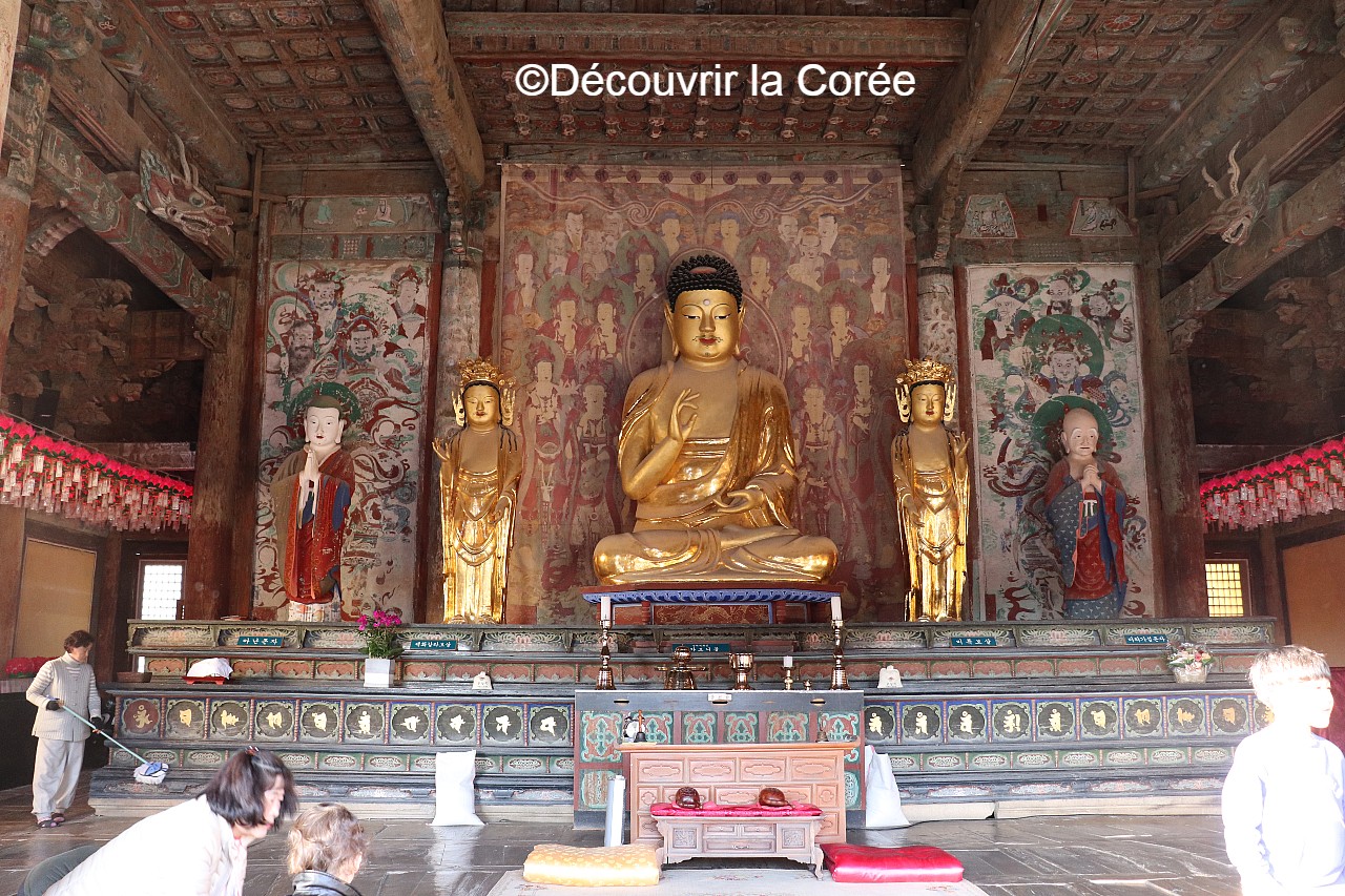 - Daeungjeon (grande salle de l’Illumination) : La salle principale dédiée à Shakyamuni, le Bouddha historique.