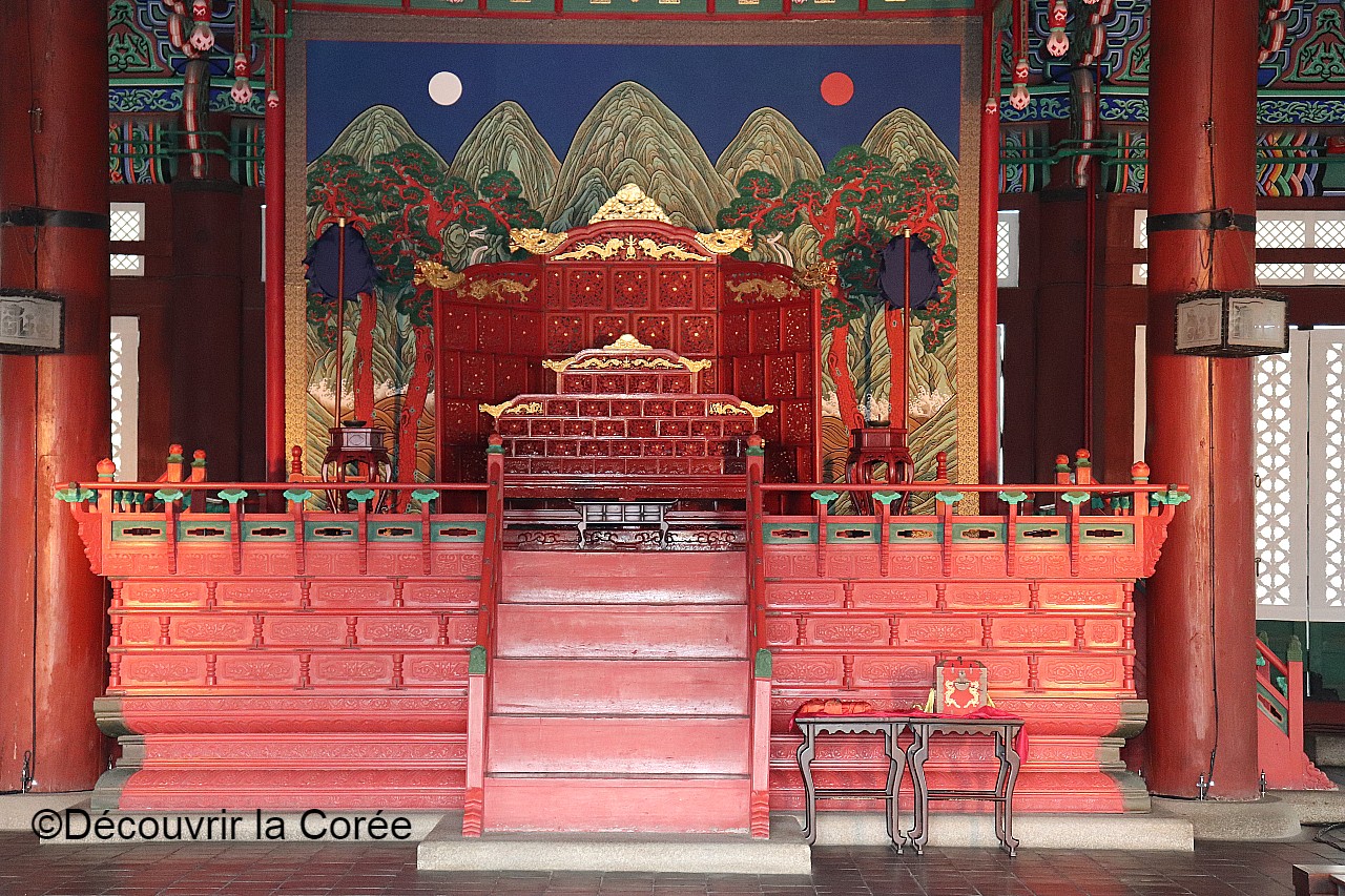 Ce bâtiment est celui qui est généralement mis en avant sur les brochures touristiques présentant le palais de Gyeongbokgung. Vous pourrez y observer la salle du trône autrefois utilisée par le roi pour y accueillir ses conseillers ainsi que les délégations étrangères.